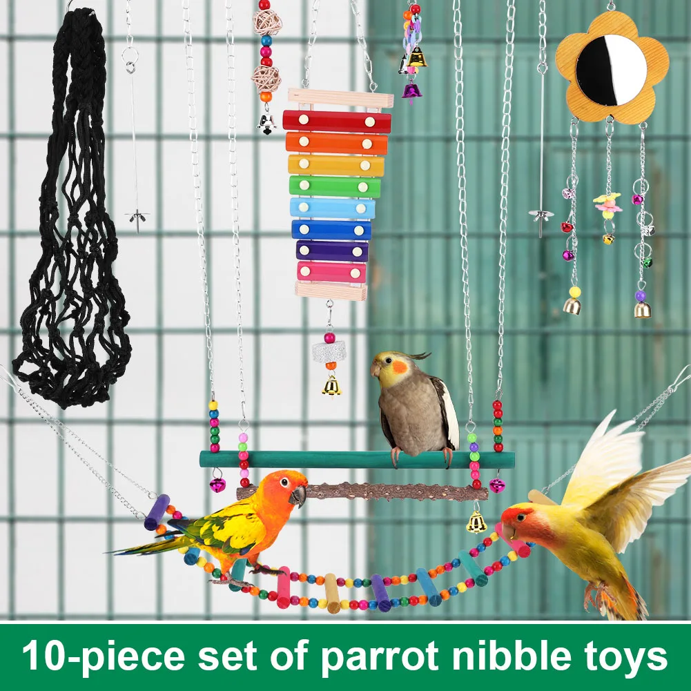 10-Piece Bird Toy Swingset – Complete Cage Play & Enrichment Set
