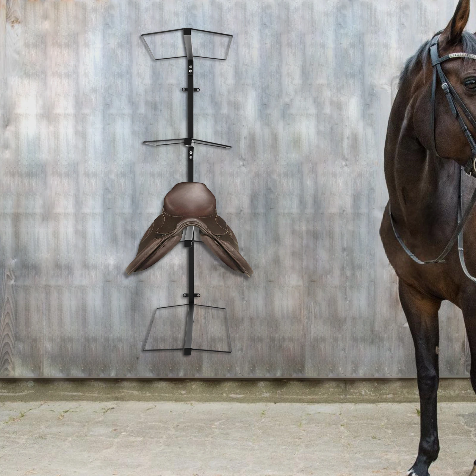 4-tier Steel Saddle Rack,Black Wall Mounted Saddle Rack 58.5*32*118cm for Horse Tack Room Stable