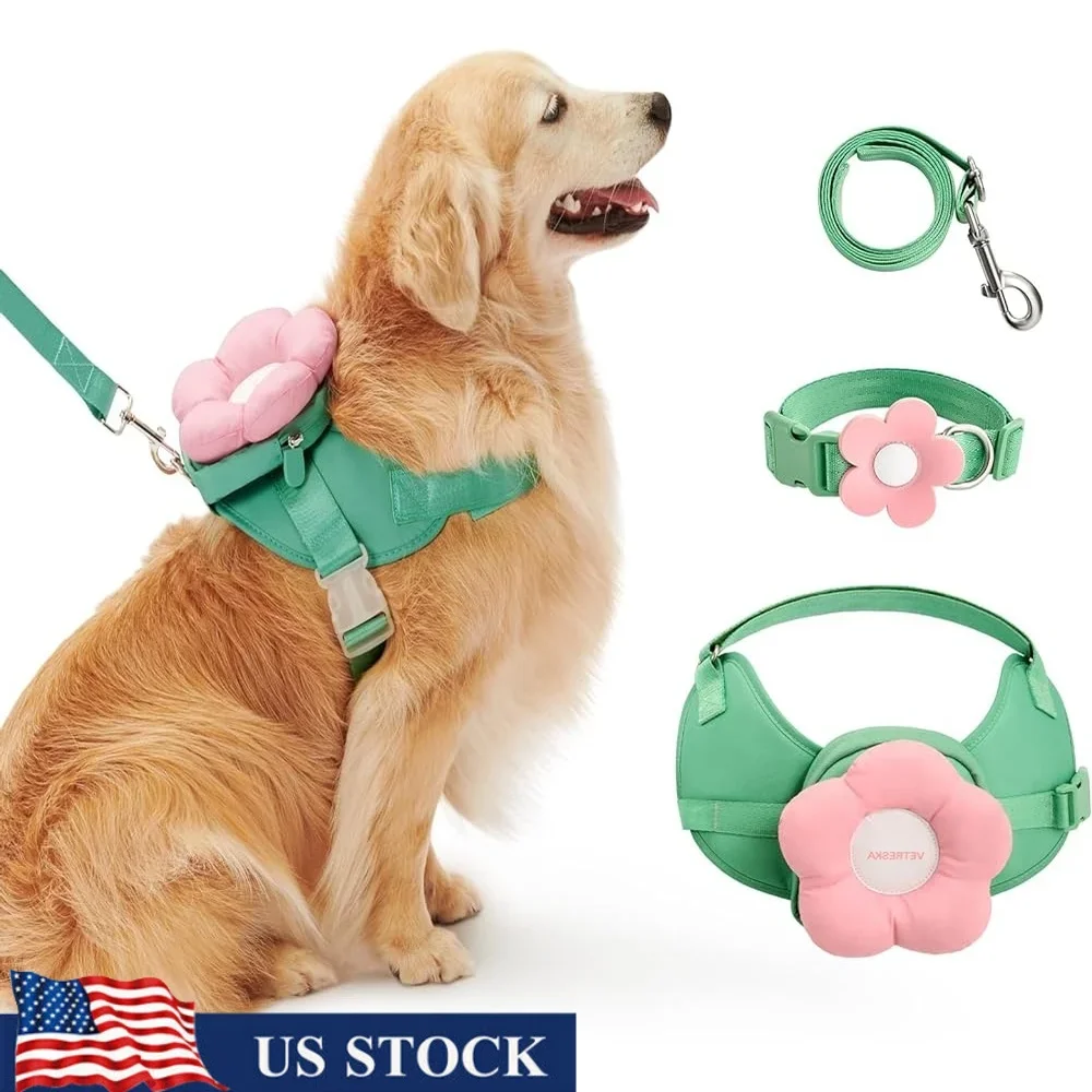 Adjustable No Pull Dog Harness Leash Collar Set Soft Padded Pet Vest Control Walking Training Floral Backpack Storage