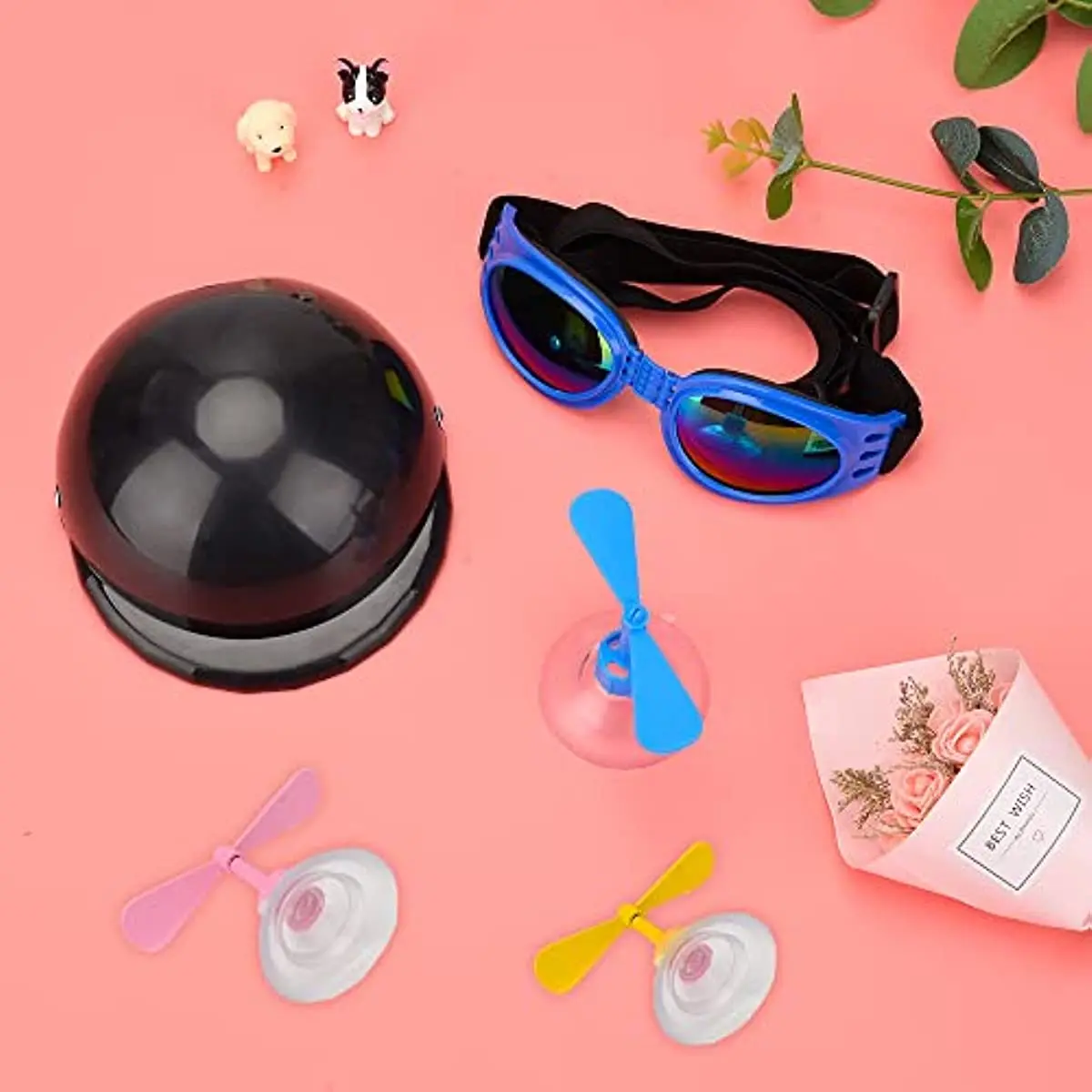 【Convenient Design】: Hats and glasses are equipped with adjustable shoulder straps, and are designed with a snap button, which is convenient for more pets of different breeds to wear. The propeller is equipped with a strong suction cup for a firm attachment to the helmet.