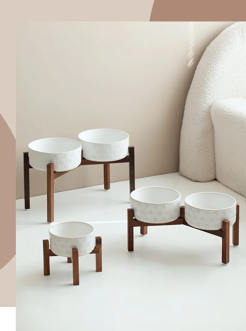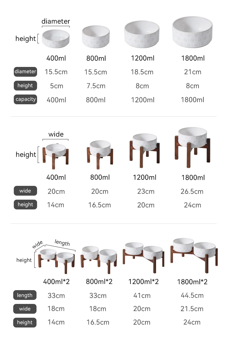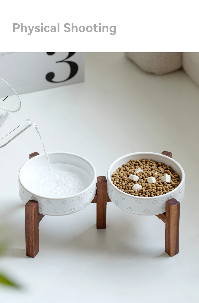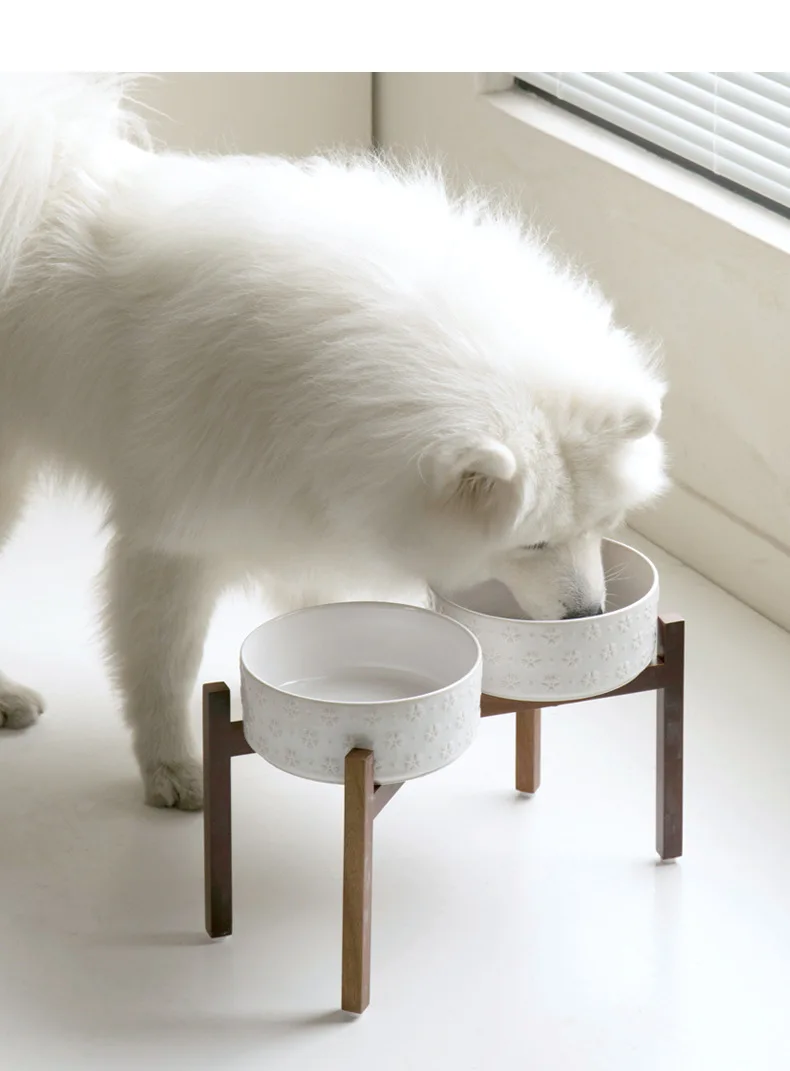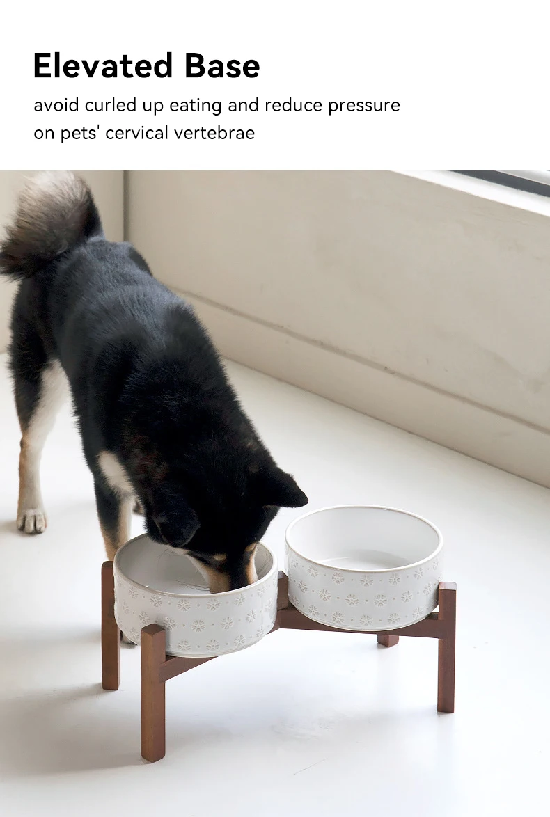 Ceramic Dog Bowl Set with Wooden Stand 1200ml 1800ml Anti Slip Pet Feeder for Medium Large Dogs Elevated Double Food Water Dish