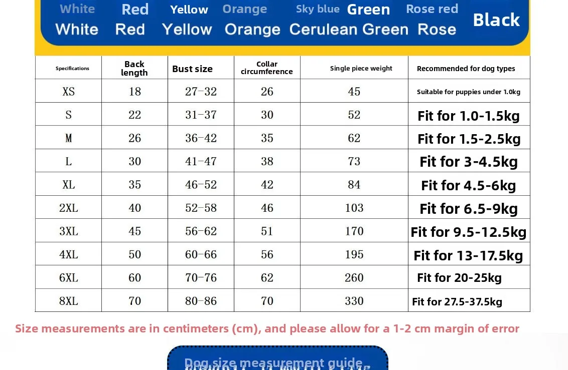 size: XS,S,M,L,XL,2XL,3XL,4XL,6XL,8XL