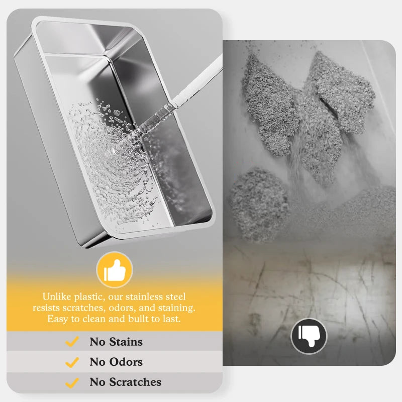 Stainless Steel Cat Litter Box With Lid, XL Metal For Big Cats, Never Absorbs Odors, Non-Sticky, Easy Clean, Anti-Urine Leakage