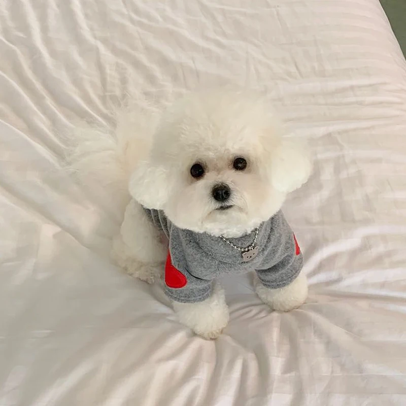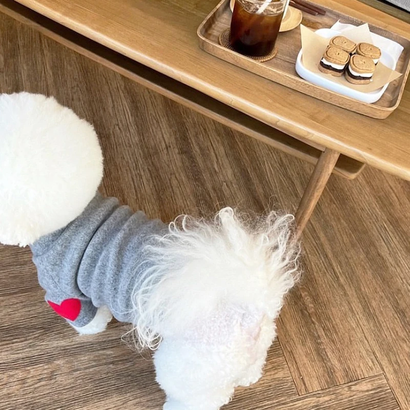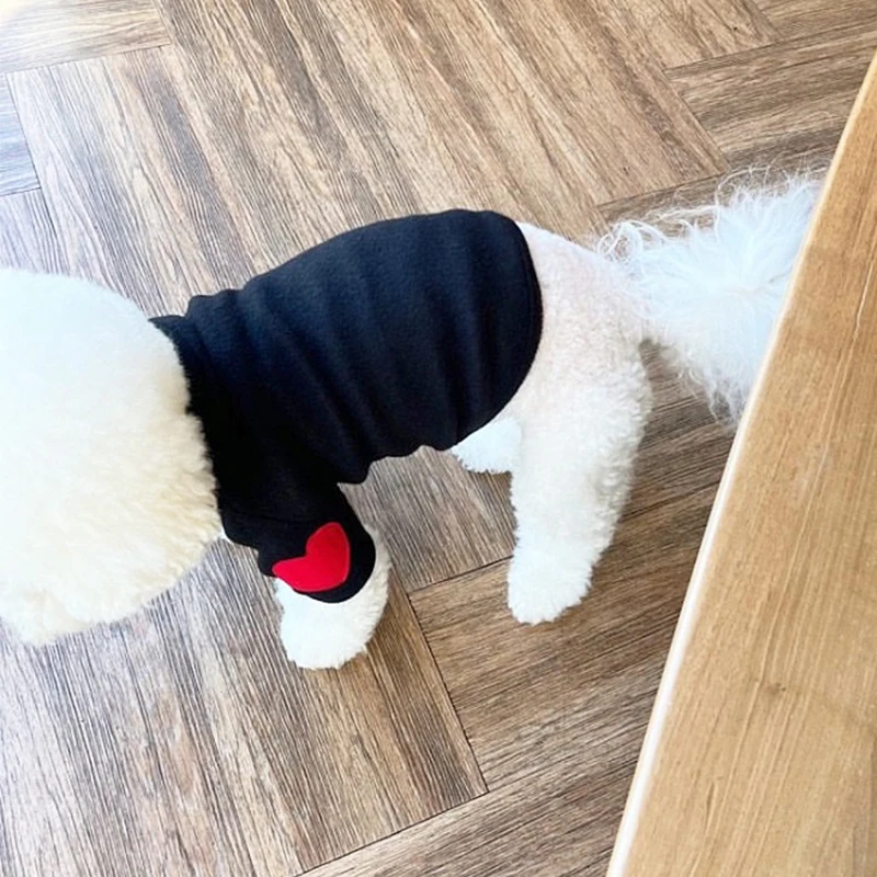 Winter Dog Shirt Heart-shaped Patch Embroidery Sweatshirt Chihuahua Breathable Warm Shirt Puppy Outdoor Clothes Pet Supplies
